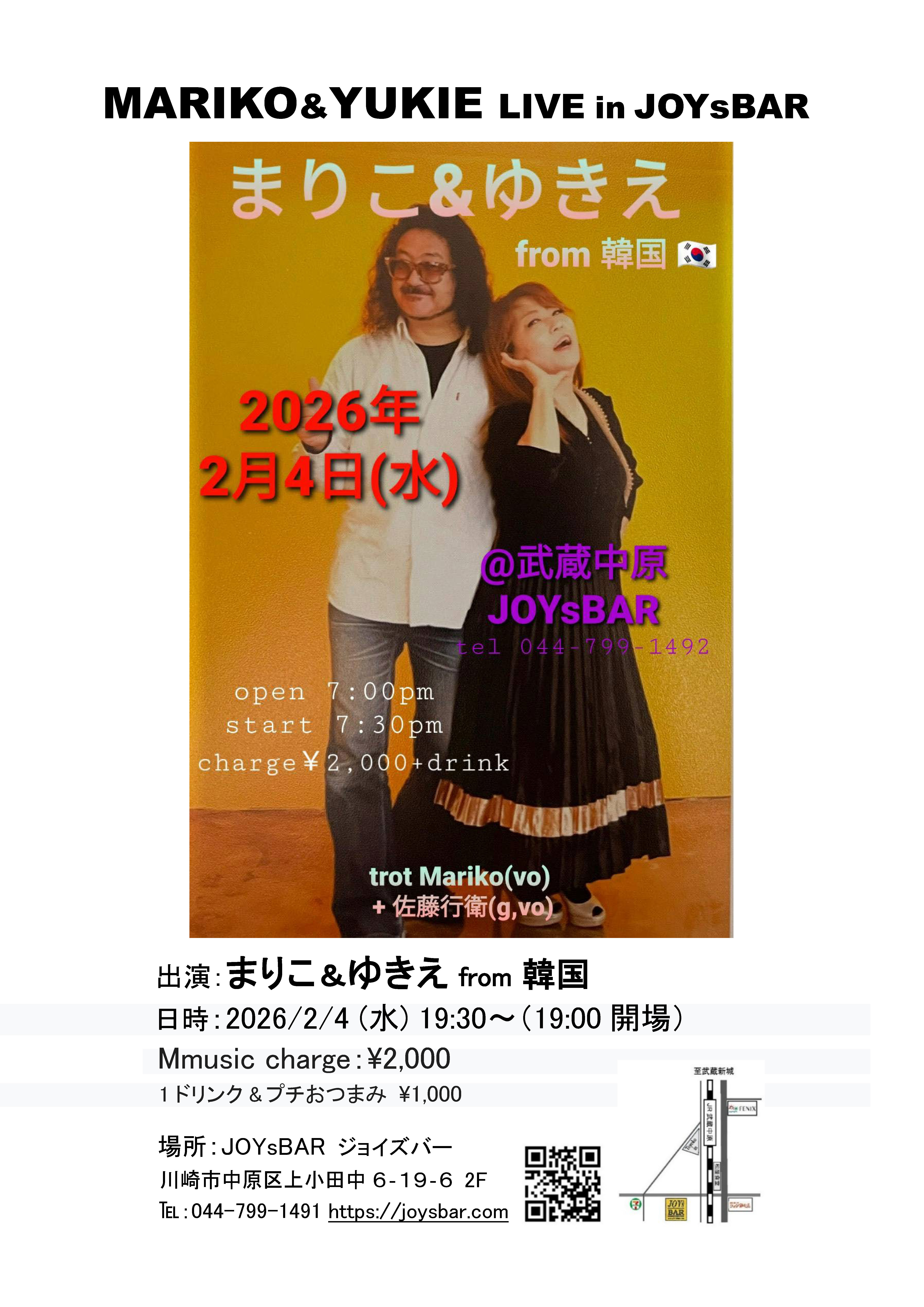 まりこ&ゆきえ LIVE in JOYsBAR! Open 19:00 Live Start 19:30= チャージ¥2000 ドリンク別 |